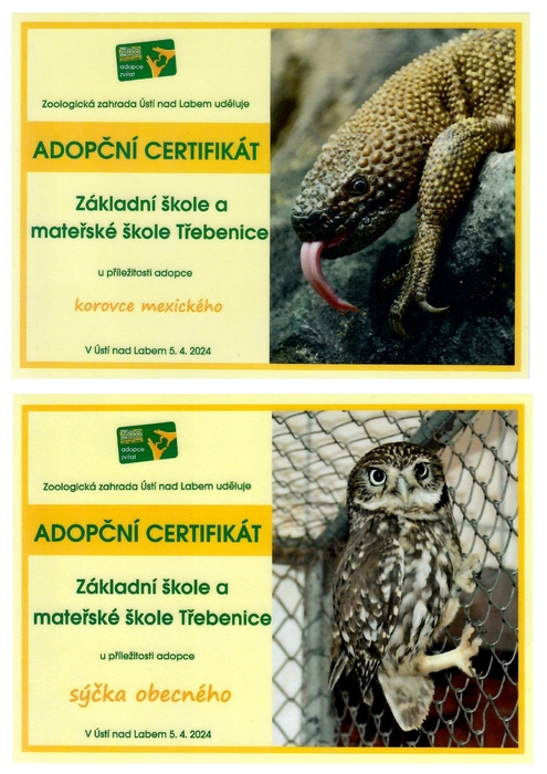Úvod > Základní škola > Aktuality > Adopční certifikát - korovec a sýček