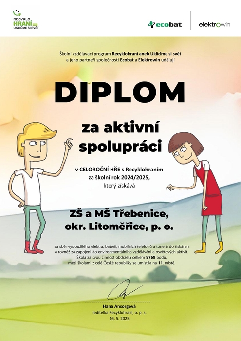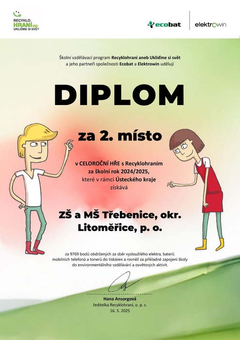 Úvod > Základní škola > Aktuality > Recyklohraní - diplom