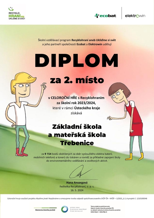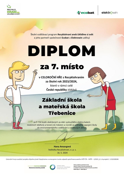 Úvod > Základní škola > Aktuality > Recyklohraní - ocenění