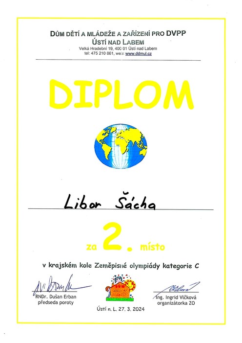Úvod > Základní škola > Aktuality > Úspěch Libora Šáchy v krajském kole olympiády ze zeměpisu