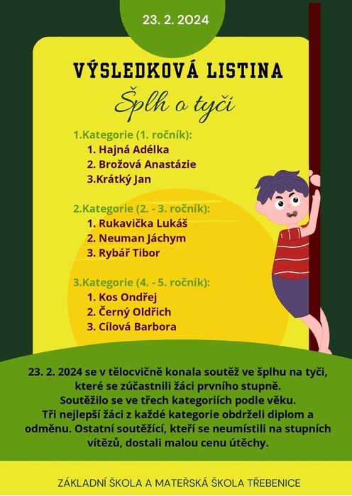 Úvod > Základní škola > Aktuality > Výsledková listina - šplh o tyči