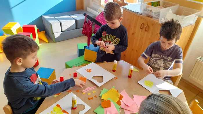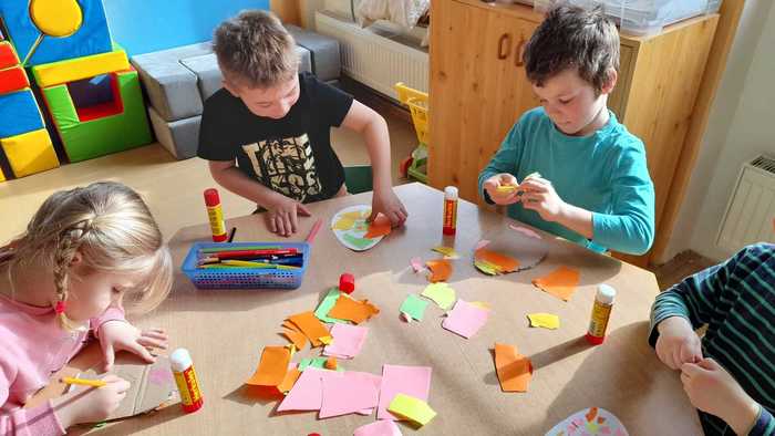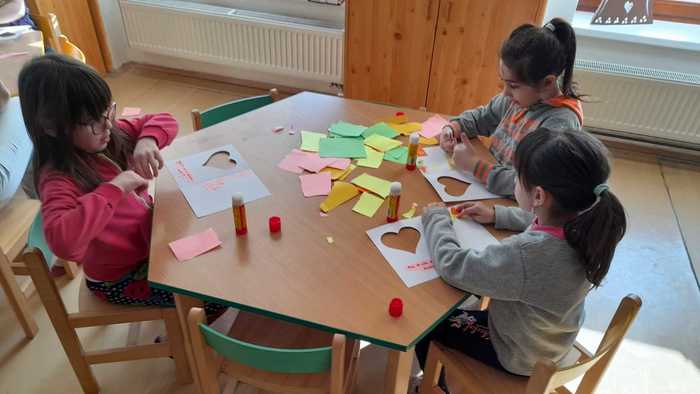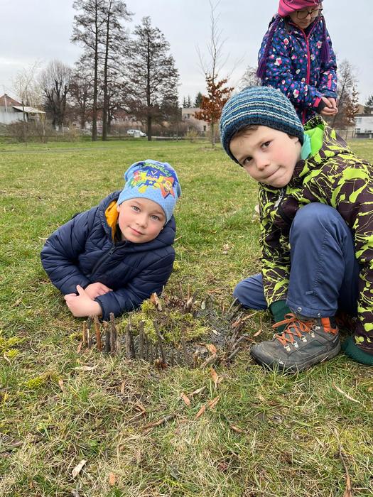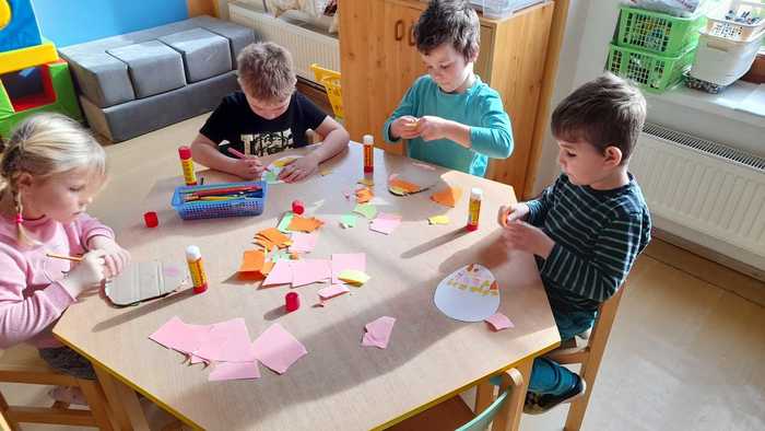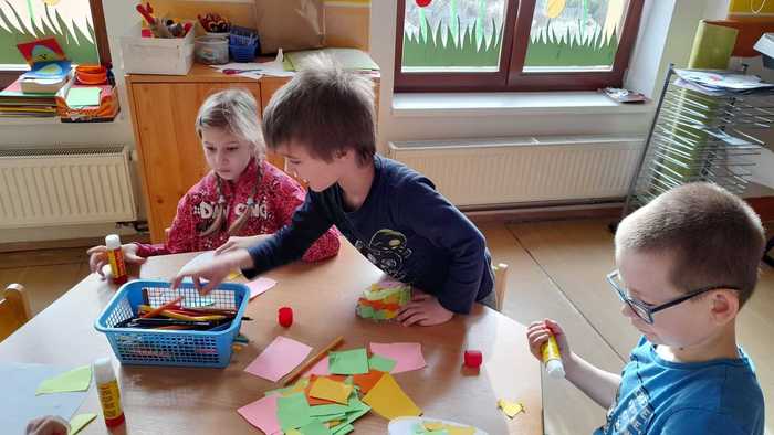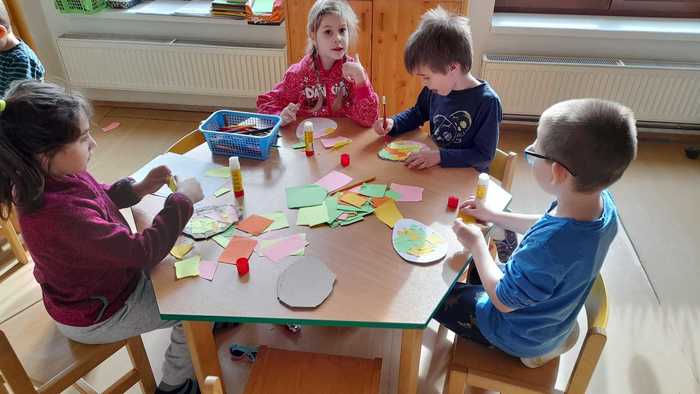 V březnu jsme se připravovali s dětmi na vítání jara. Děti stavěly domečky z darů přírody, vyprávěli jsme si o velikonočních svátcích a děti vyráběly přáníčka na velikonoční jarmark. Děti navštívily sestřičky z dentální hygieny a vyprávěly jim, jak se mají správě starat o své zoubky. Nezapomněli jsme ani na svátek matek, kdy děti vyrobily pro své maminky přáníčka. Byli jsme pozváni i na výstavu s názvem Třebenická nitka, kde děti zaujala historie, různé techniky a ukázky výrobků nejen z krajek.
