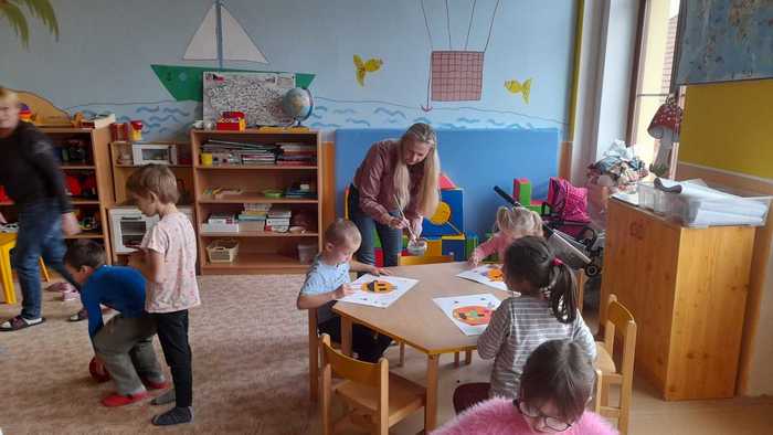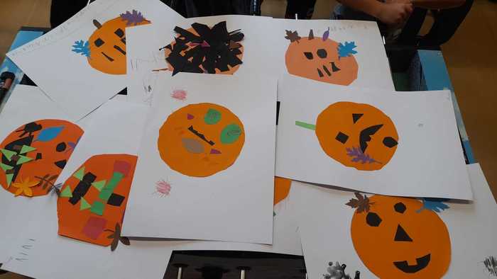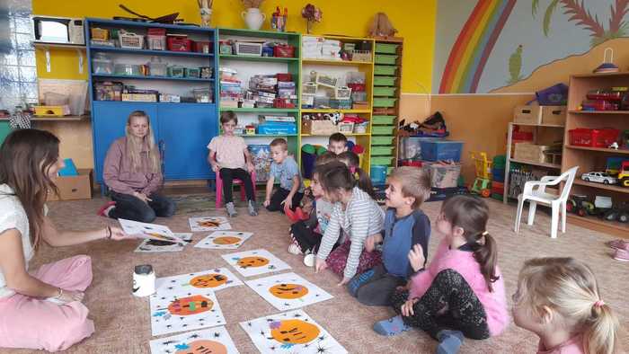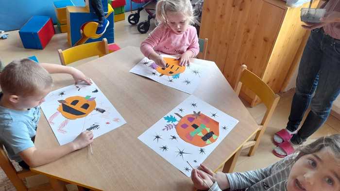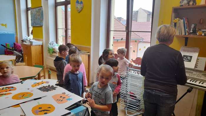Výroba halloweenských dýní (procvičování jemné motoriky a geometrických tvarů). Nácvik podzimních písní.