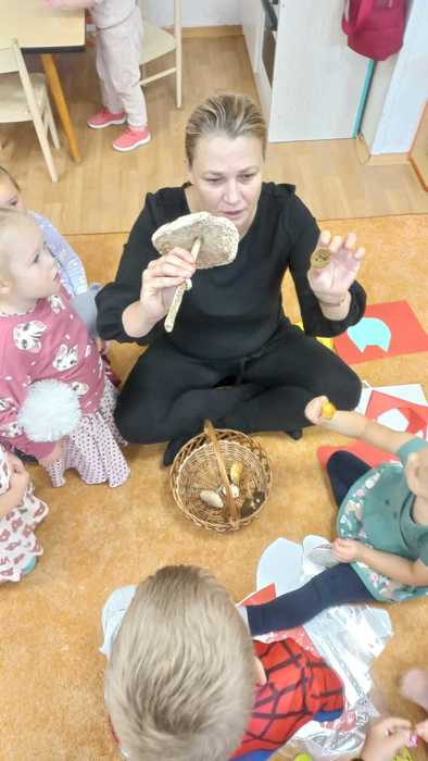 Během týdne o houbách se děti naučily rozeznávat houby jedlé x nejedlé. Svými smysly prozkoumávaly skutečné houby (bedla, hřib, klouzek)